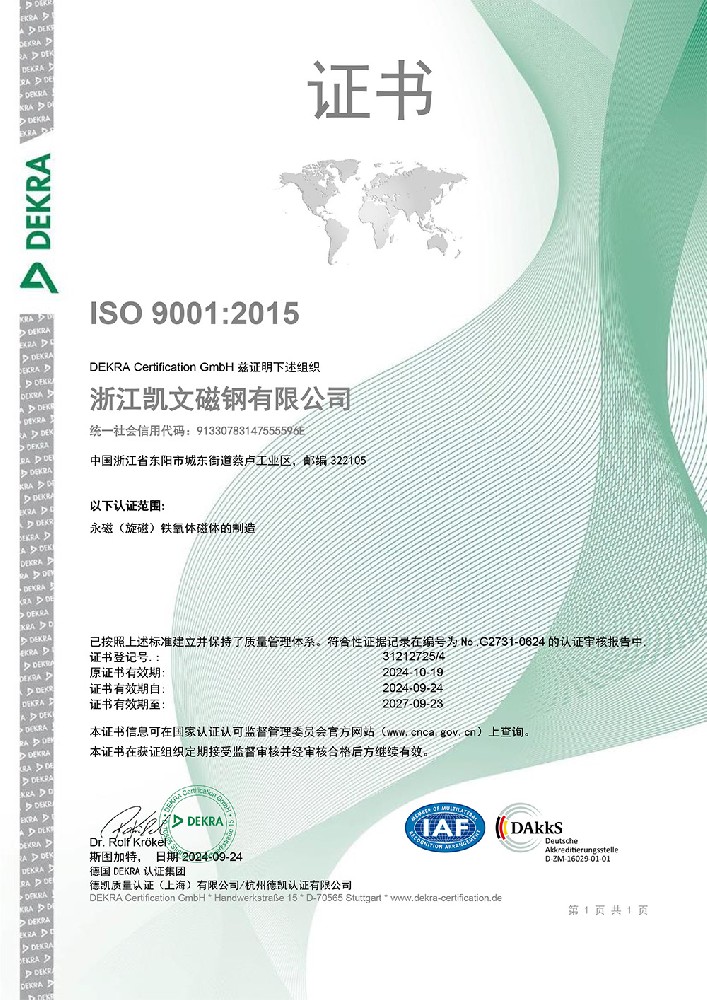 本公司國家高新技術企業(yè),是集科研、生產、銷售為一體的永磁鐵氧體磁性材料專業(yè)生產廠家。 公司自主研發(fā)生產的永磁鐵氧體超大、超薄、超小瓦形、矩形、環(huán)形磁體、高電阻磁體、高穩(wěn)定、抗干擾、低溫度系數磁體、高磁晶各向異性場磁體等,正批量應用與變頻壓縮機、汽車電機、風力發(fā)電機、傳感器及音響、傳動等領域。 公司擁有國內外先進的自動化、智能化制造永磁鐵氧體磁體生產線,充分運用了“機器換人”、ERP、機聯網技術,實現了產品的高技術、高質量、高效率生產。具有年產20000噸鐵氧體預燒料和20000噸產品約3000多種規(guī)格產品的生產能力。所生產的產品30%以上達到國際先進水平,50%以上國內領先水平。